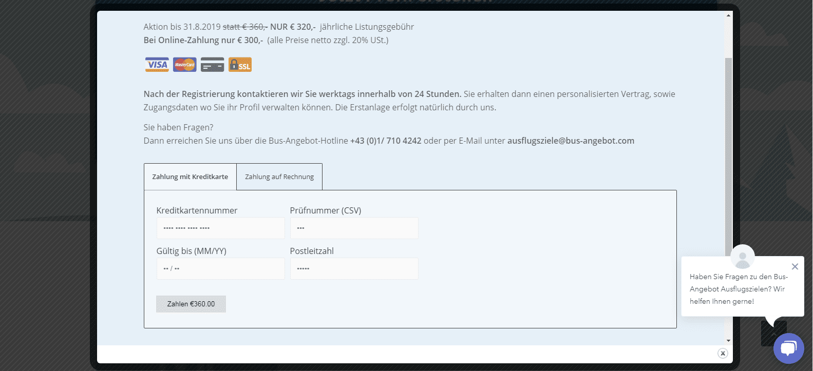 auch auf ausgewählten Webseiten der Busunternehmen